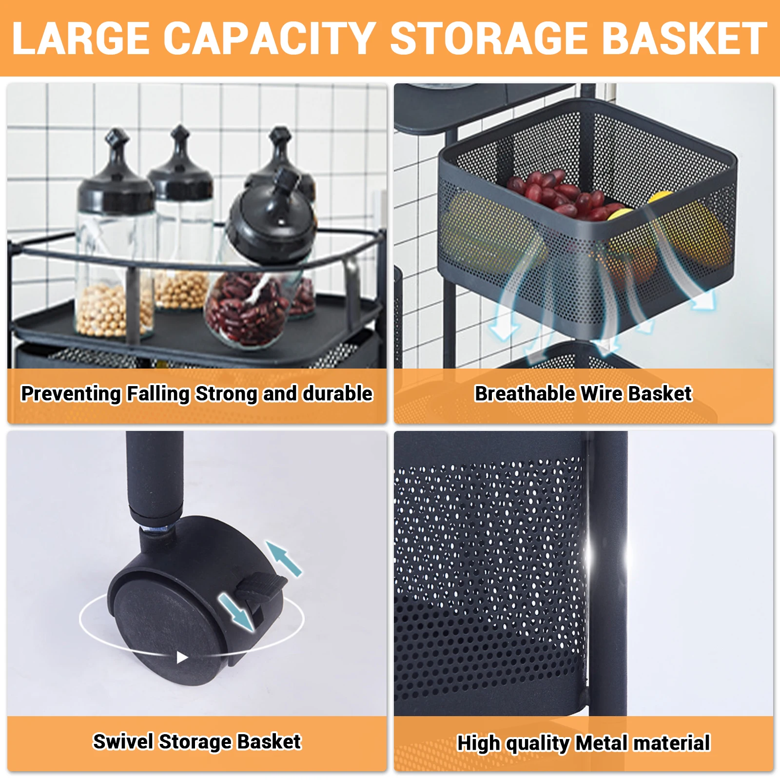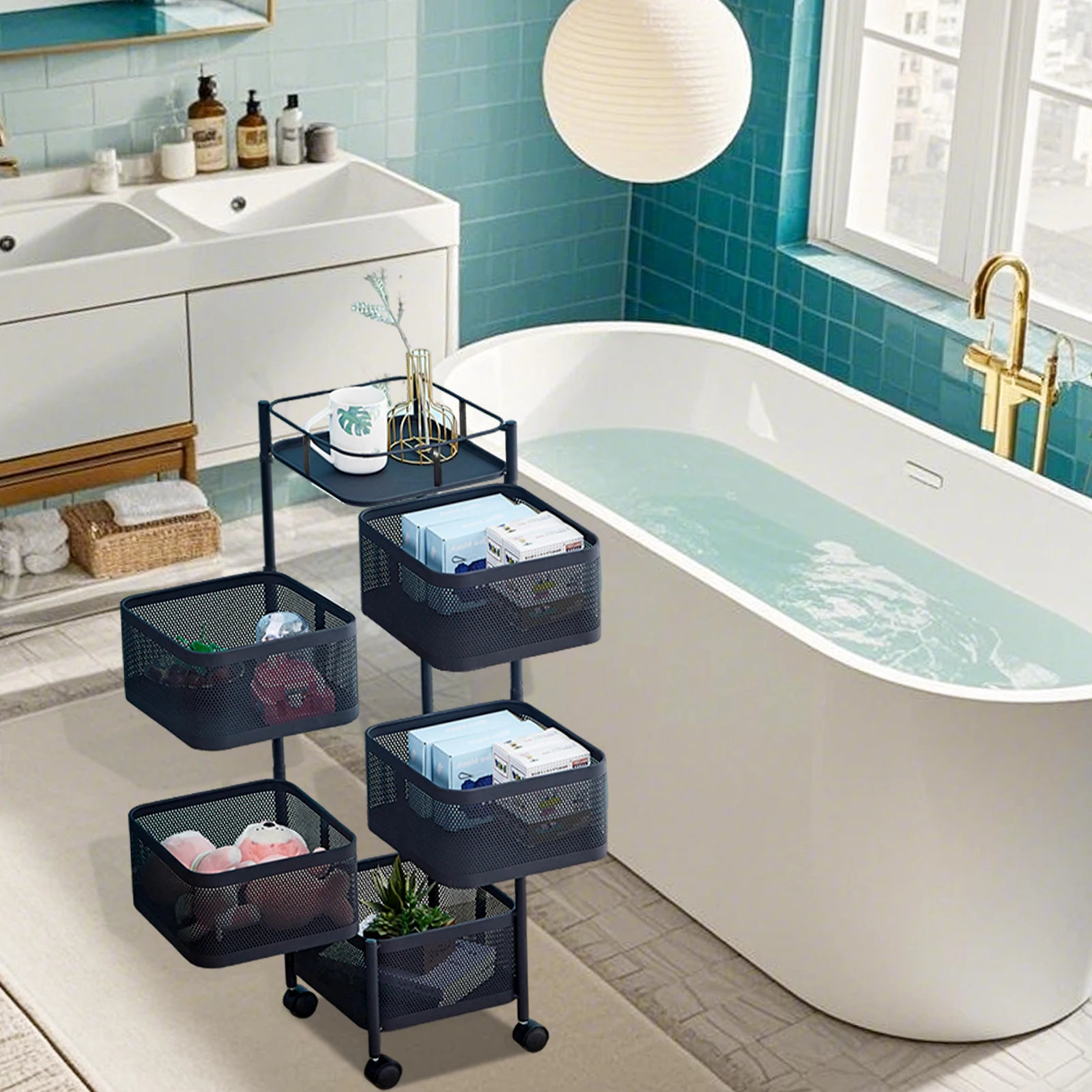 Ultimate Convenience – Five Layers 360° Rotatable Trolley Storage Rack